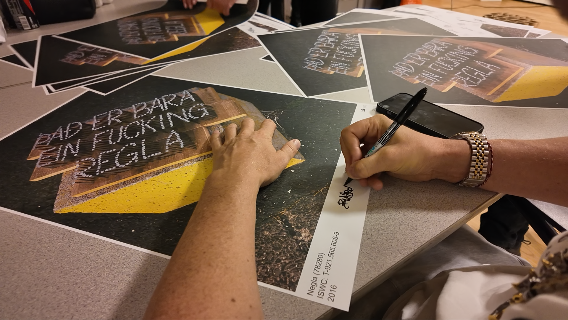 Hér erum við með upplagsverk prentað í A2 stærð og svo áritað af XXX Rottweiler hundum.